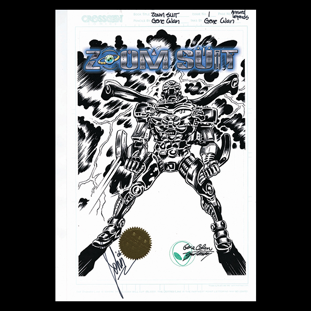 A Museum Quality 11×17 Lithograph Print, printed on heavy Bristol board, and featuring the artwork from the Cover of ZOOM SUIT #1 ARMORED LEGENDS COLLECTION GENE COLAN. Marvel Comics LEGEND Gene Colan reimagines his iconic cover to Iron Man #1. This lithograph is hand signed by ZOOM SUIT creator John Taddeo. Each museum quality lithograph is printed on heavy 11×17 Bristol board, stamped with the ZOOM SUIT “Green Alien Head” seal, and is also fixed with the Superverse gold foil embossed ZOOM SUIT Seal. Limited to 100 Autographed Studio Proofs.