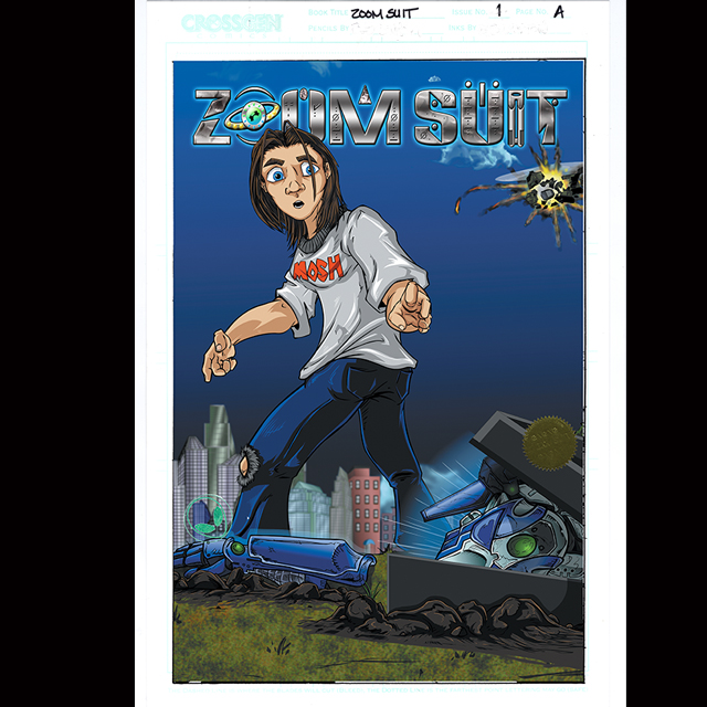 A Museum Quality 11×17 Lithograph Print, printed on heavy Bristol board, and featuring the artwork from the Cover of ZOOM SUIT #1 SUSPENDED ANIMATION EDITION. This lithograph is hand signed by ZOOM SUIT creator John Taddeo. Each museum quality lithograph is printed on heavy 11×17 Bristol board, stamped with the ZOOM SUIT “Green Alien Head” seal, and is also fixed with the Superverse gold foil embossed ZOOM SUIT Seal. Limited to 100 Autographed Studio Proofs.