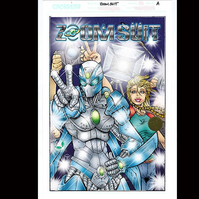 A Museum Quality 11×17 Lithograph Print, printed on heavy Bristol board, and featuring the artwork from the Cover of ZOOM SUIT V2 #1 by Chasen Grieshop. With his cover “ROCKSTAR,” Chasen Grieshop may have captured the moment when celebrity has finally found its way into that helmet. This lithograph is hand signed by ZOOM SUIT creator John Taddeo. Each museum quality lithograph is printed on heavy 11×17 Bristol board, stamped with the ZOOM SUIT “Green Alien Head” seal, and is also fixed with the Superverse gold foil embossed ZOOM SUIT Seal. Limited to 100 Autographed Studio Proofs.