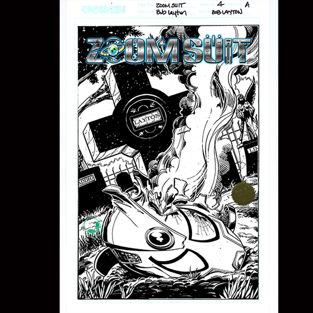 A Museum Quality 11×17 Lithograph Print, printed on heavy Bristol board, and featuring the artwork from the Cover of ZOOM SUIT #1 V2 by Bob Layton. Look, let’s just be honest, Myles, Brittany, the fans, John Taddeo, the Superverse investors, our landlord…this does not look good for anyone. Will Zoom Survive Volume 2 Issue 1? This lithograph is hand signed by ZOOM SUIT creator John Taddeo. Each museum quality lithograph is printed on heavy 11×17 Bristol board, stamped with the ZOOM SUIT “Green Alien Head” seal, and is also fixed with the Superverse gold foil embossed ZOOM SUIT Seal. Limited to 100 Autographed Studio Proofs.