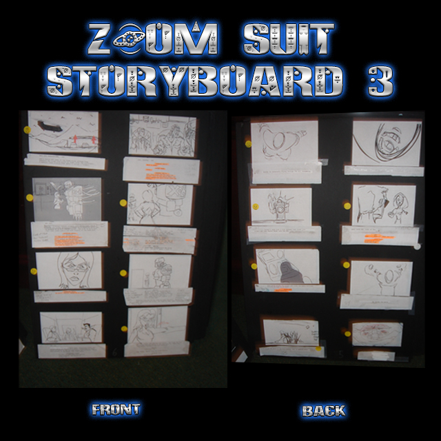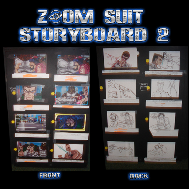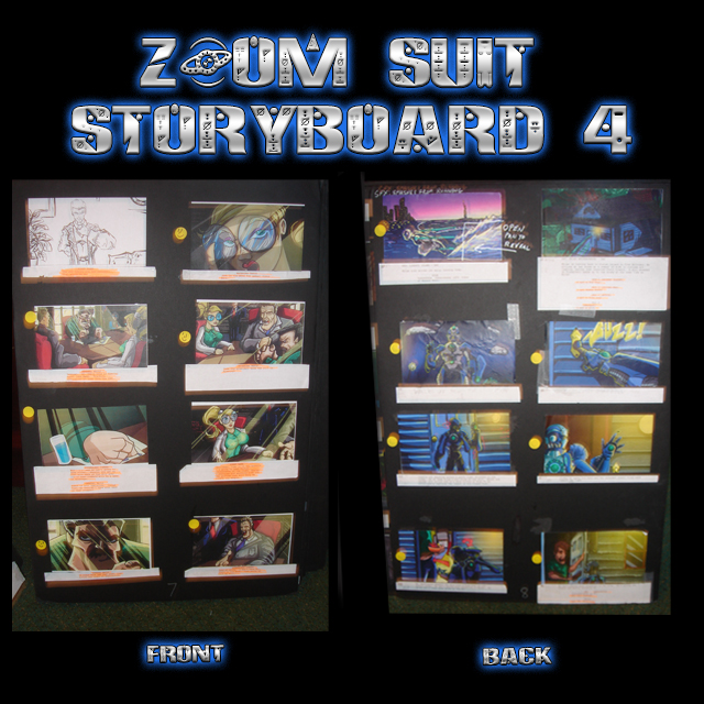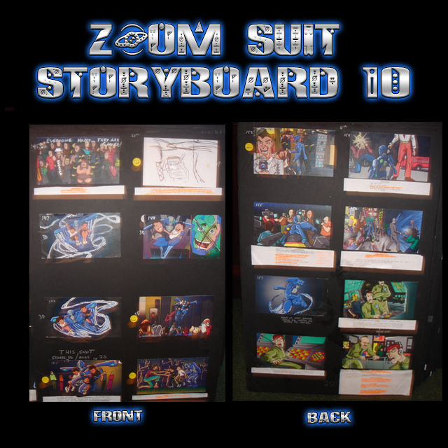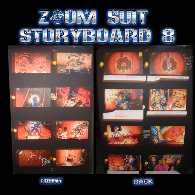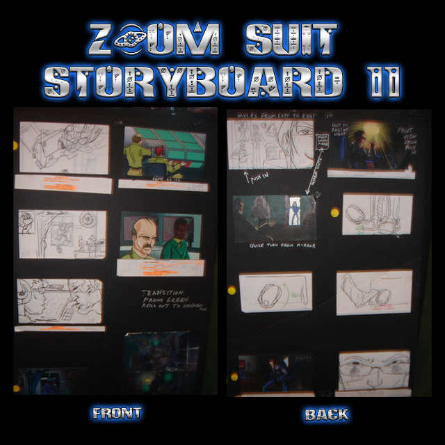 These are John Taddeo’s PRODUCTION USED storyboards from the Award Winning ZOOM SUIT animated features. Each is sturdy, 3/8 thick foam board is 36”x 24” (HxW). Each storyboard is DOUBLE SIDED, and includes from six (6) to eight (8) individually printed sequential panels “Pasted up” on each side of the foam board. Most of the individual sequential panels are accompanied by camera instructions and or script lines below the artwork. Many boards are marked up with John Taddeo’s handwritten notes and instructions. Each order includes One (1) 36”x24” DOUBLE SIDED Storyboard. We will try to accommodate requests for specific boards, but we cannot guarantee your selection. Each board will arrive Autographed by John Taddeo. FOR A PERSONALIZED AUTOGRAPHED PLEASE INCLUDE THE REQUEST – AND EXACT SPELLING – WITH YOUR ORDER.
