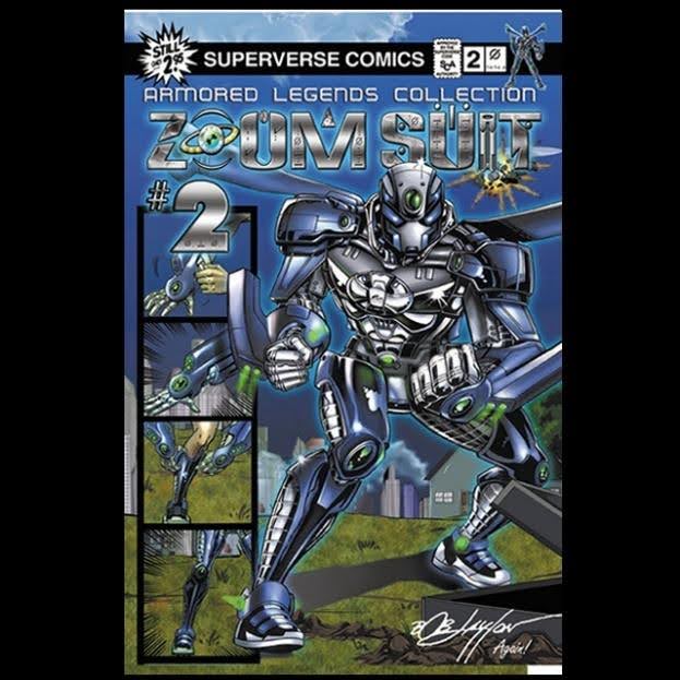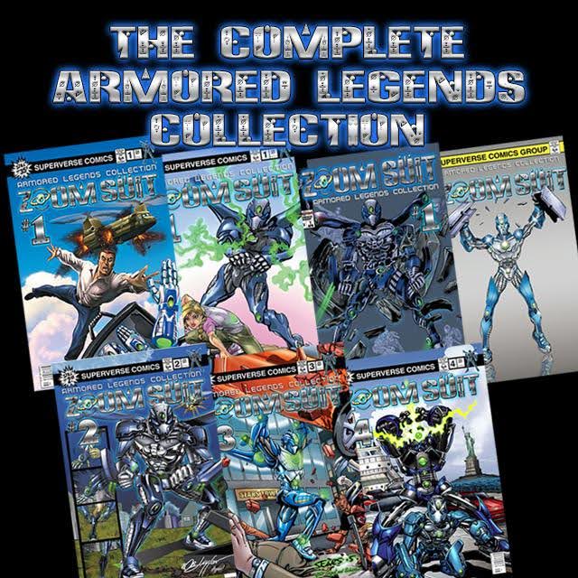All Seven (7) “Armored Legend” variant issues in one complete set. The complete ZOOM SUIT Series, by THE GREATEST ARTISTS IN ARMORED HERO HISTORY. ZOOM SUIT ARMORED LEGENDS EDITIONS were only available at the SUPRERVERSE STUDIOS STORE, and to comic shops, as a reward for strong support of the ZOOM SUIT comic series. (VERY LIMITED QUANTITY. ORDER NOW.)