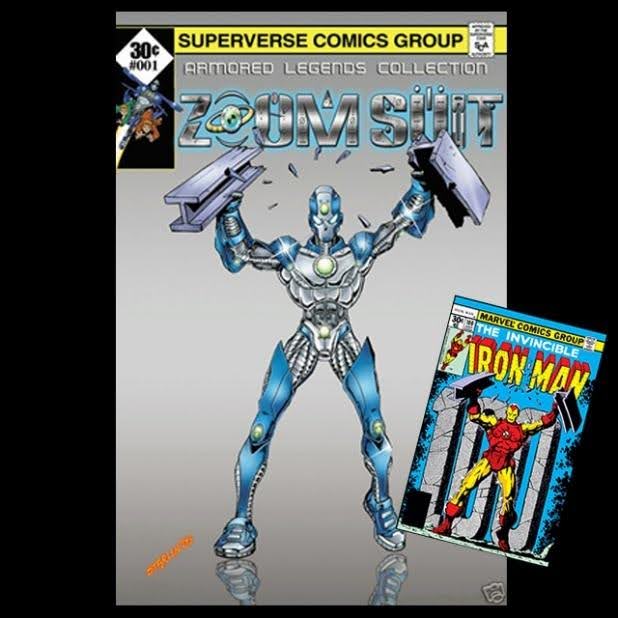 ZOOM SUIT #1 ARMORED LEGENDS VARIANT BY JIM STARLIN. Jim Starlin reimagines his legendary cover to Iron Man #100. A 50 to 1 Retailer Incentive Variant.