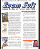 Zoom Suit is the story of an armored suit of alien origin that is lost by the military and found by an average boy. This all-ages humor book is being heavily promoted by Superverse Productions, its parent company, with numerous promotions and giveaways. For months leading up to the release of the first issue in April, fans have had access to free promotional trading cards, contests, and special limited edition comics via the company website. Retailers have been given the red carpet treatment. From numerous press releases to help build sales momentum to posters, trading cards, ashcan editions, and free limited edition issues, any and all promotional material needed was available. As an additional incentive, retailers were enticed with an astonishing discount on the first issue and different tiered limited-edition variants available at no charge depending on the increments of the book ordered. These were in the same rare books with covers by some prominent artists that have worked on armored super-hero titles before.